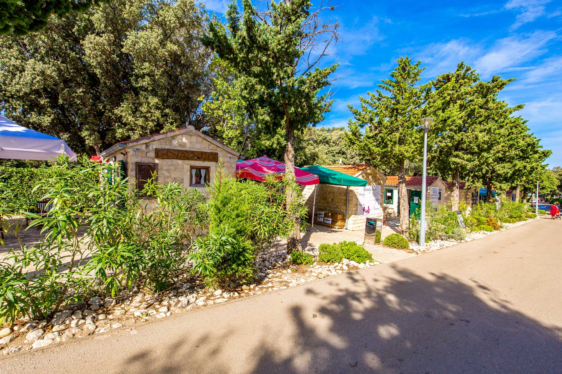 In the Gastro house you can taste local specialties or buy autochthonous souveniers that will remind you of a holiday in the camp, while in the Straško winery you can taste the wines of top wineries.