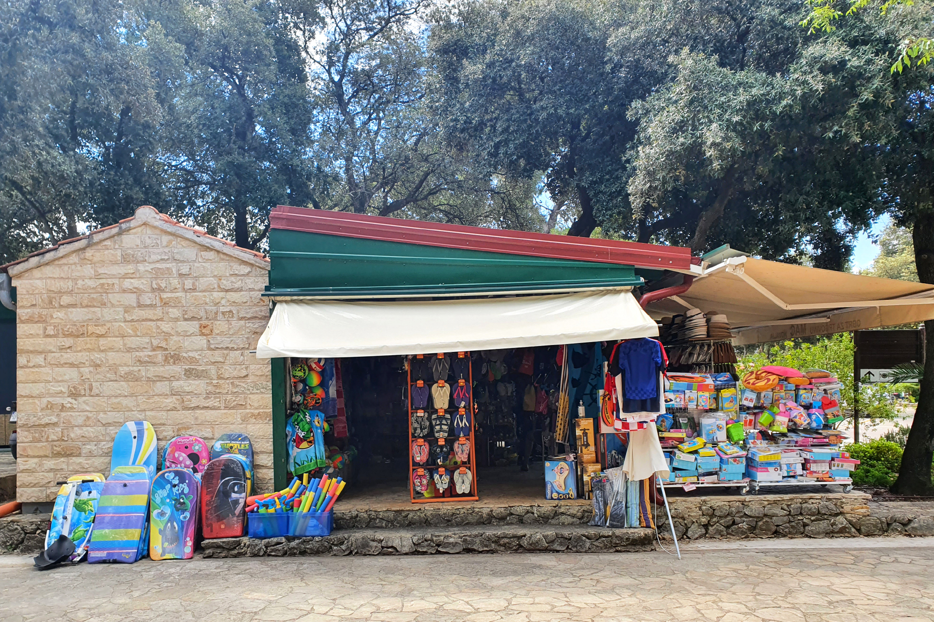 Swimsuits, beach towels, diving masks and other props for playing on the beach are just a part of the rich assortment of the "MAC" store, which is located next to the side entrance to the camp, right next to the mini market Straško.